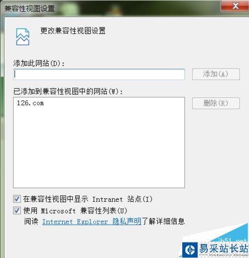 注意事項:進入兼容性視圖設置點擊添加126.com后,必需刷新網頁,才可成功上傳文件。