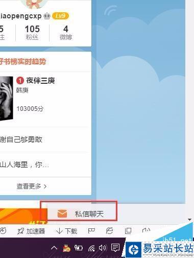 1、首先,請大家打開新浪微博網頁,在新浪微博頁面中登錄新浪微博賬號,在個人中心頁面中,點擊頁面右下角“私信聊天”選項。