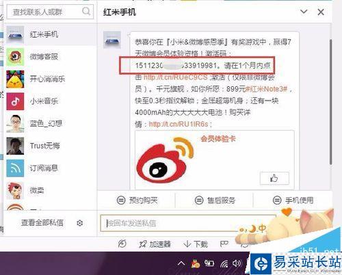 2、一般微博會員體驗卡都是以私信激活碼+激活鏈接的方式來進行發放,所以我們點擊找到私信中包含的網址鏈接即可。