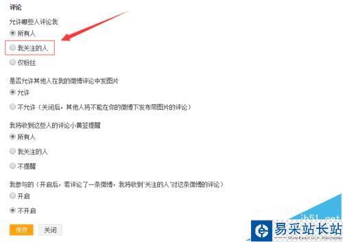 6、設置好只有我關注的人能評論自己的微博后,點擊保存即可了