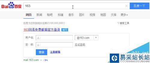 1、在百度搜索框中輸入163,結果第一個出現了163免費郵箱登錄界面,輸入用戶名和密碼登錄進入郵箱。