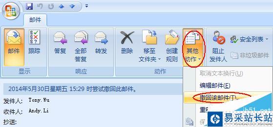 “郵件撤回看似很簡單,其實(shí)其中包括很多需要考慮的因素,因?yàn)樯婕皠h除一封郵件,所以我們需要確保這封郵件不是被惡意刪除的,同時這封郵件的內(nèi)容在傳輸過程中為保證安全也是無法被讀取并抓取信息用于郵件撤回的,所以郵件撤回功能最終交由Outlook實(shí)現(xiàn)。