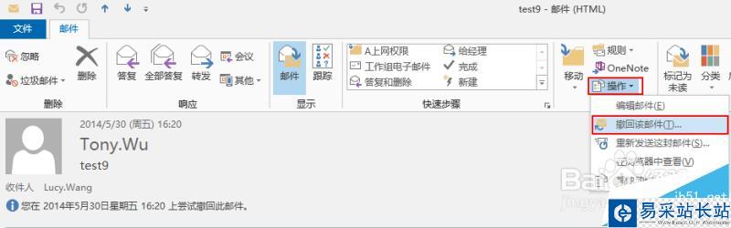 3、收件人的Outlook必須是打開著的,且沒有查看這封郵件