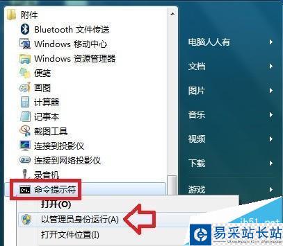 2、如果是系統問題,可以嘗試重新注冊動態鏈:開始→所有程序→附件→右鍵命令提示符→以管理員身份運行。