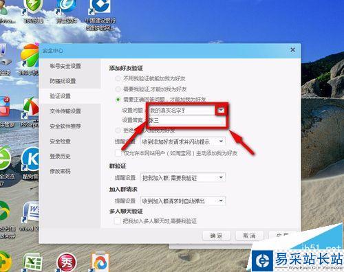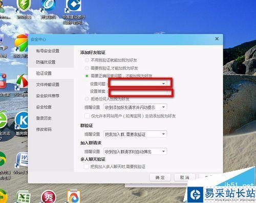 6、選擇第三項以后,我們看見彈出來了兩個文字框,分別是“設置問題”和“設置答案”兩個選項框。我們按要求填入。