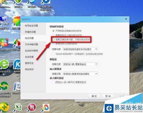 5、第三項才是“需要正確回答我問題才能加我為好友”,我們點擊前面的圓圈進行選擇,如下圖所示: