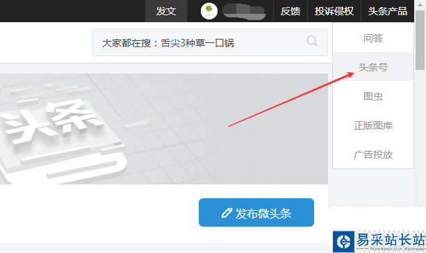 2、然后再點擊右上角【頭條產品】下的【頭條號】。