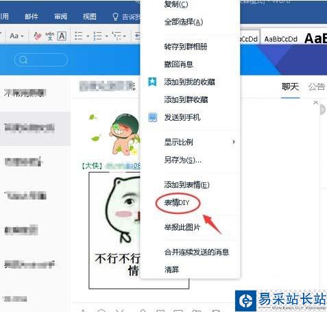 1、在聊天界面中右擊表情,選擇“表情DIY”。