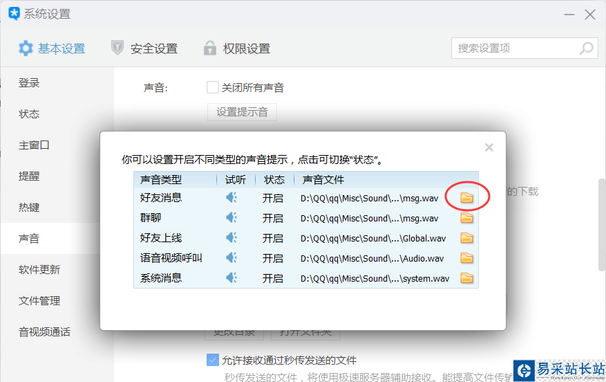 5、點擊對應聲音提示音路徑后面的文件夾按鈕,