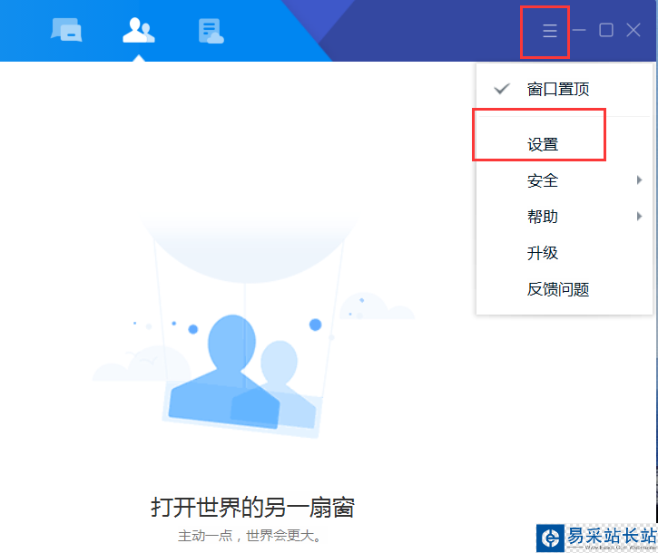 1、打開TIM軟件,點擊界面右上角如圖圖標,在列表中點擊 設置 選項