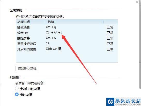 5、這時會彈出全局熱鍵設置窗口,在這里設置好“鎖定TIM”的熱鍵就可以了。