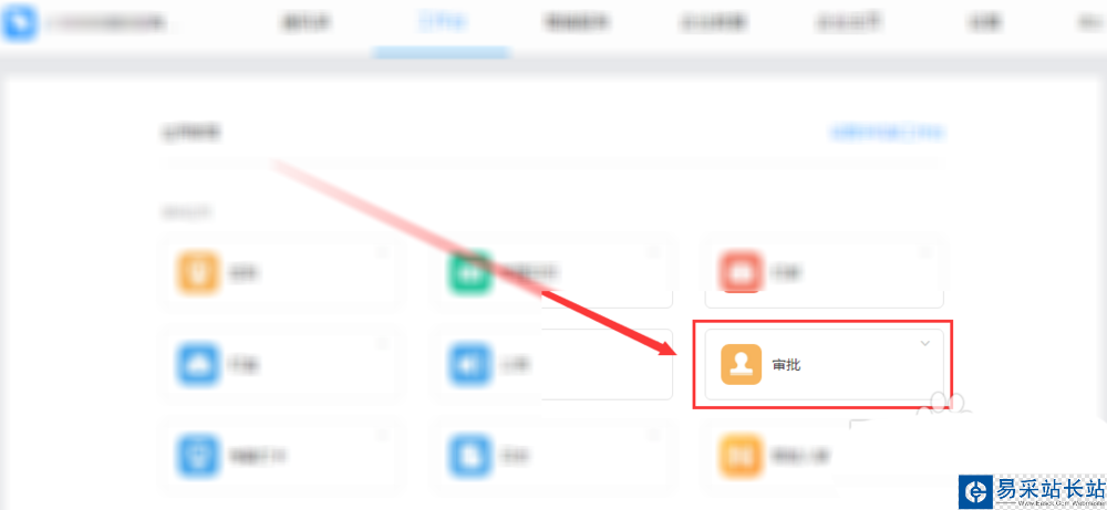 2、進(jìn)入管理后臺(tái)再點(diǎn)擊工作臺(tái),在工作臺(tái)里找到審批,點(diǎn)擊它