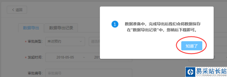 6、查詢好后再點(diǎn)擊查詢旁邊的導(dǎo)出,記得一定要先查詢。點(diǎn)擊導(dǎo)出后會(huì)彈出一個(gè)小窗。直接點(diǎn)擊知道了