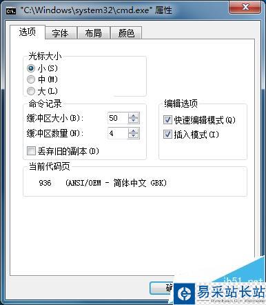 2、在cmd窗口上方-右鍵-屬性-選擇 快速編輯模式-確定;