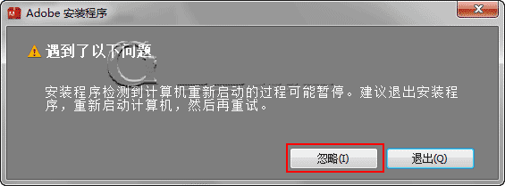 2、啟動安裝程序以后,會出現下面的窗口,點擊忽略繼續安裝。