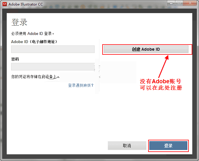 4、此步需要登錄剛才我們創建的Adobe ID,如果之前沒有創建ID的則可以在點擊登錄后的頁面中創建。