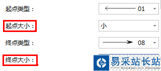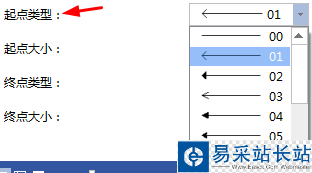 4、根據繪圖需要選擇起點和終點的箭頭類型。