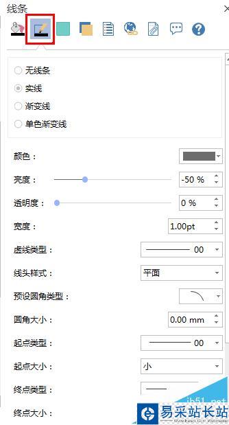 3、選中你將進行更改的線條,在操作界面的右側點擊線條,就可以對你所選的線條進行更改了。