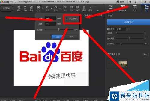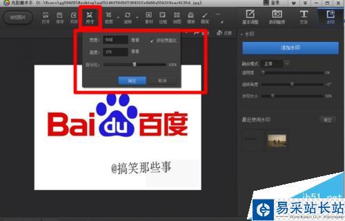 3、我們點擊尺寸,會出來一個圖片尺寸信息的窗口,并且上面的圖片尺寸大小信息 可以直接修改。
