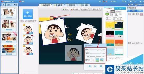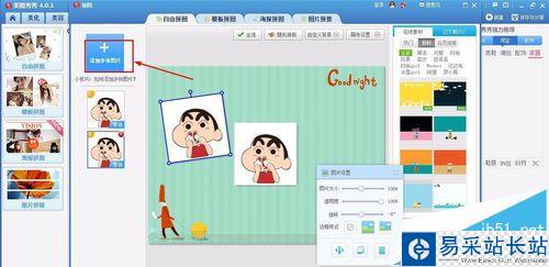 5、添加完N張圖片以后,可以調(diào)整每張圖片的大小、位置、透明度以及旋轉(zhuǎn)角度,這個(gè)根據(jù)自己的需要隨意調(diào)整,這里不多贅述