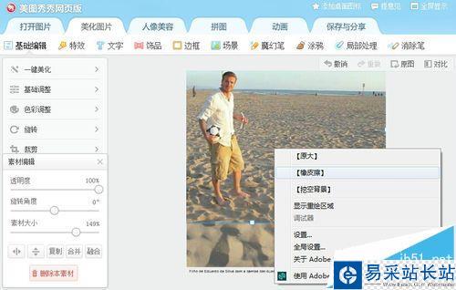 2、然后在這張要融合的圖片上右鍵,選擇“橡皮擦”。