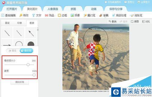 2、如果還要融合的好一點,可以把橡皮擦大小調大點,涂的時候輕快的一掃而過,整個擦除效果就會非常漂亮。