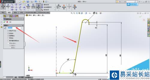 1、首先選擇基準(zhǔn)平面,勾勒一個(gè)草圖輪廓,如圖所示。通過等距實(shí)體命令,將輪廓曲線偏移一個(gè)厚度,最后將端點(diǎn)處連接起來。