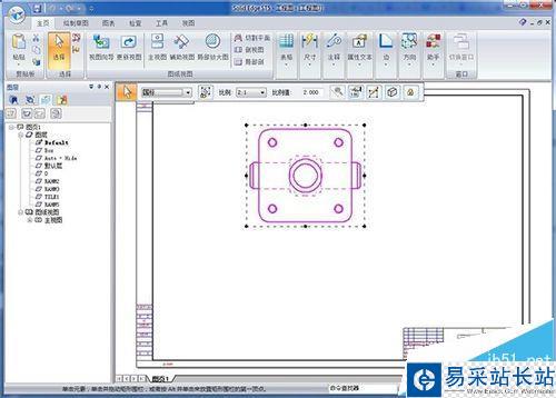 5、在圖紙的合適位置放置視圖,放置好后如下圖所示: