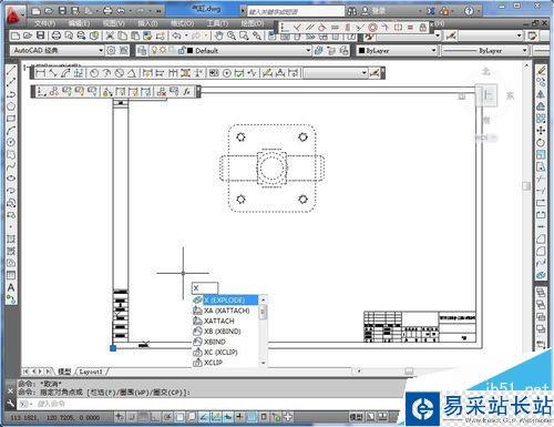 7、用AutoCAD打開剛才保存的工程圖,將視圖選中,輸入命令“x”然后回車,將塊打散,視圖就可以編輯了,如下圖所示