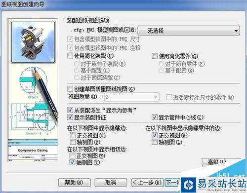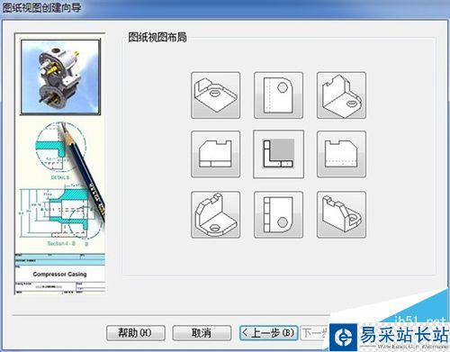 3、在“圖紙視圖創建向導”對話框中點擊“下一步”,進入“圖紙視圖方向”界面,如下圖所示: