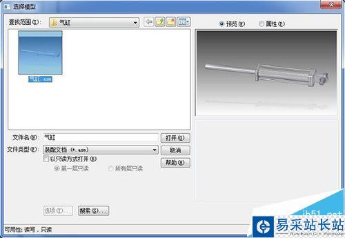 2、單擊“視圖向導”,打開要出工程圖的模型,如下圖所示: