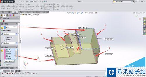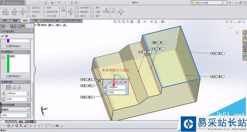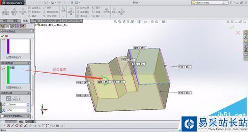注意事項:切口草圖不可以封閉,選擇連線第一條必須為固定面的一條連線。