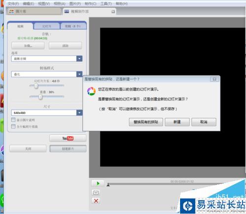 6、最后點擊創建影片,選擇新建,這樣可以原先的沒有音樂的視頻可以保留,這樣一組視頻照片就制作好了