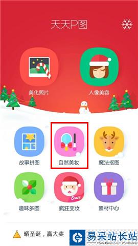 1、打開天天P圖,點擊【自然美妝】并選擇一張要P的圖片;