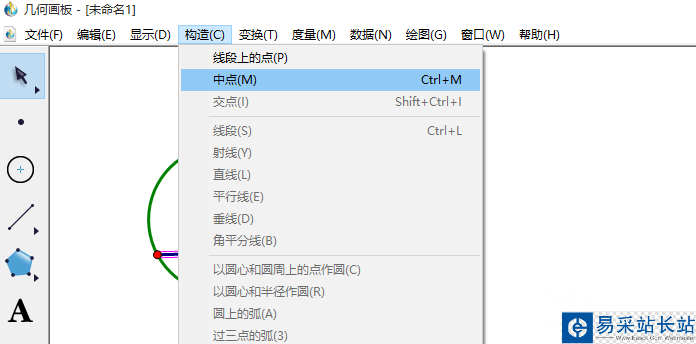 5、選中圓上動點(diǎn),及中點(diǎn),點(diǎn)擊生成點(diǎn)的軌跡。