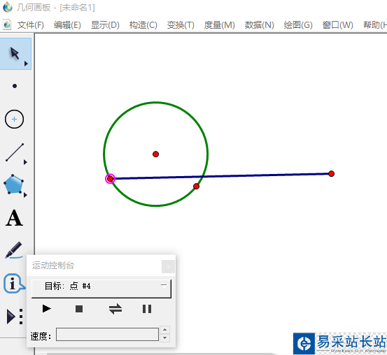 3、在狀態(tài)欄中點(diǎn)擊點(diǎn)的軌跡,可以觀察點(diǎn)p在圓上運(yùn)動。按運(yùn)動控制臺上的停止按鈕,則可停止。