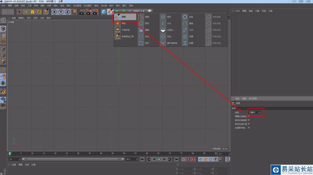 1、打開C4D,切換到正視圖,快捷鍵是F4