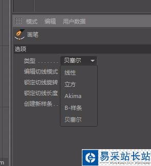 3、選擇畫筆,繪制樣條,畫筆類型默認貝塞爾