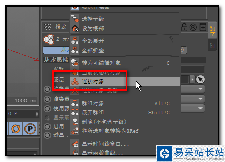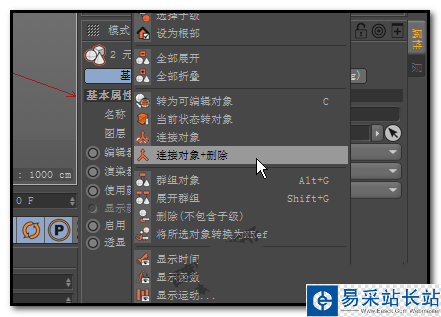 3、接著,鼠標在對象面板這里,右擊,彈出一大串菜單中點:連接對象+刪除