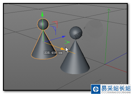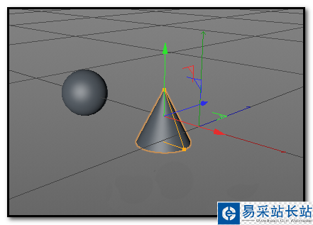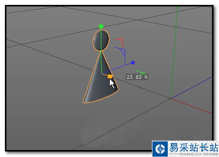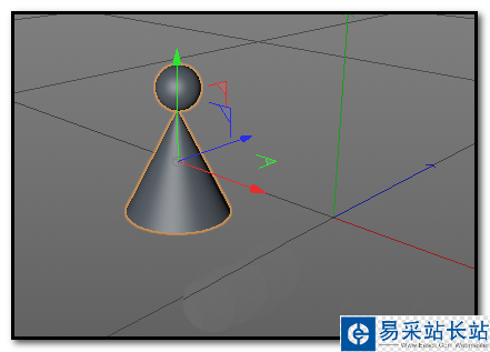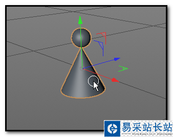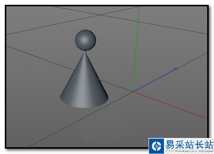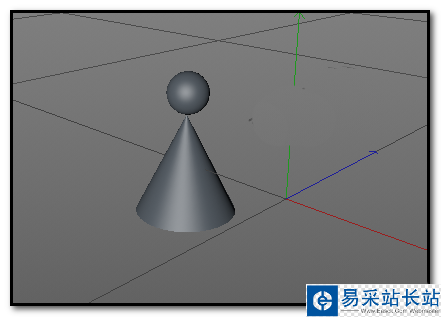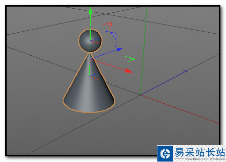 4、這時,球體與圓錐體,已合二為一,成為一個整體;并自動轉為可編輯對象。我們對此合并對象進行各種操作,移動,旋轉、縮放等等,是以一個整體來進行。