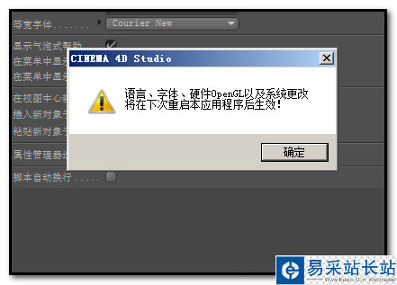 9、當你選擇好數字后,這時,會彈出一個對話框,框中說明,此次的更改需要重啟軟件后才生效的。我們點擊確定。重啟軟件后,字體大小就會改變。