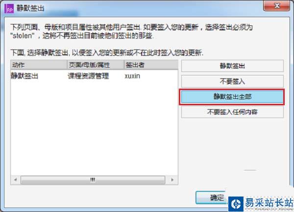 5、我們可以看到簽入時彈出這個框之后,已經成功了一大半,點擊“靜默簽出全部”,如下圖所示: