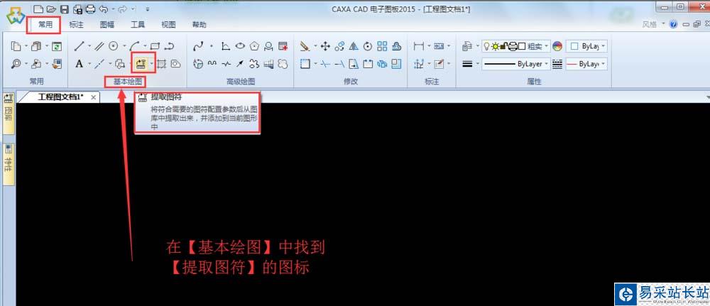 1、在【常用】→【基本繪圖】命令下,找到【提取圖符】圖標。