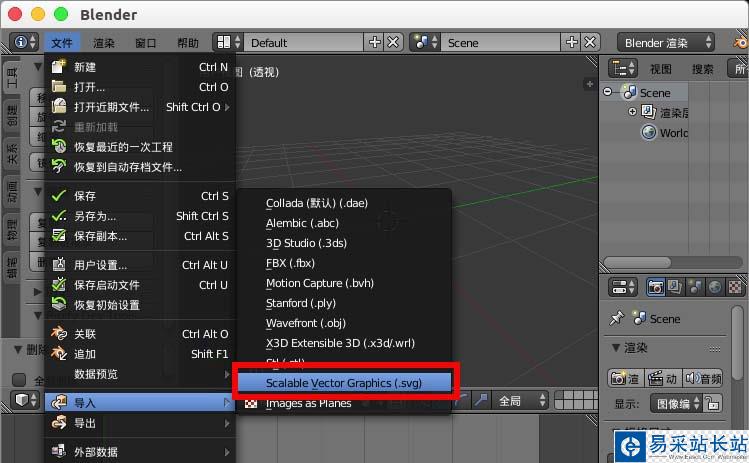 3、選擇“文件”--“導(dǎo)入”--“Scalable...Graphics(SVG)”。
