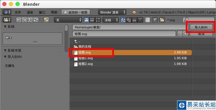 4、選擇一個位置的svg文件點選“導(dǎo)入BVH”進行導(dǎo)入。