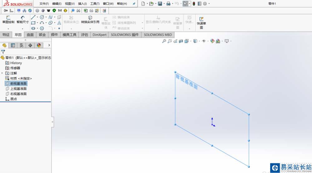 1、打開制圖軟件進入到零件圖之后我們在前視基準面新建一個草圖。