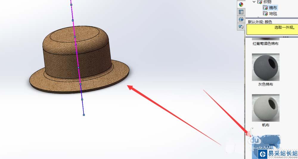 6、為了讓帽子更真實,我們還可以給帽子添加渲染效果,點擊軟件右側的小對話框里的外觀。