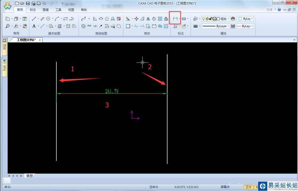 4、捕捉成功后,即可方便的標(biāo)注出端點(diǎn)到直線的距離。