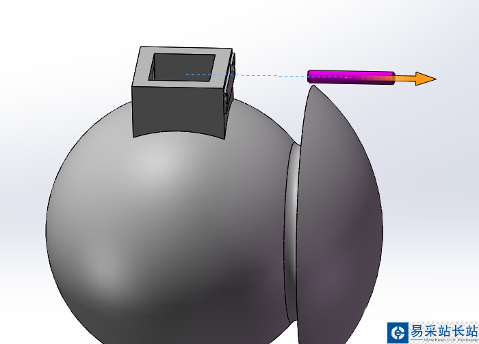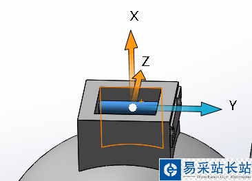 4、如下圖所示,單擊圓柱銷零件,出現(xiàn)坐標(biāo)系,如果向往Y萬(wàn)向拖動(dòng),那么將鼠標(biāo)拖動(dòng)Y軸,松開(kāi),等零件變紅以后再拖動(dòng)零件,可以快速移動(dòng)。