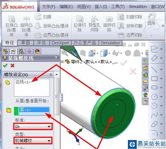 5、打開之后,選擇邊線,基準(zhǔn)面,選擇國家標(biāo)準(zhǔn),選擇螺紋類型,如圖所示